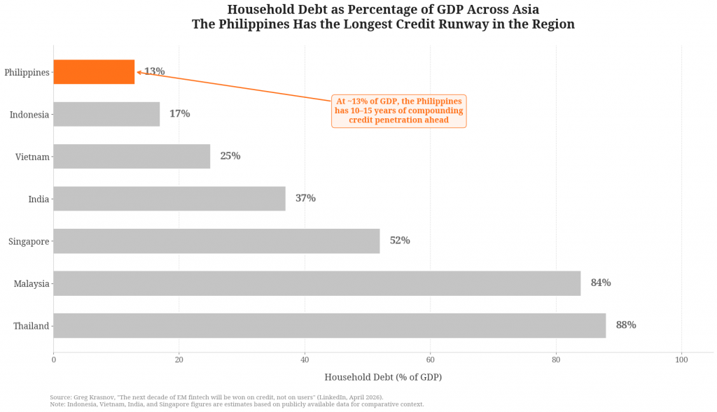 The Philippines, in other words, has the lowest credit base, the strongest license moat, and the most receptive strategic capital pool in the region. That is a rare configuration.